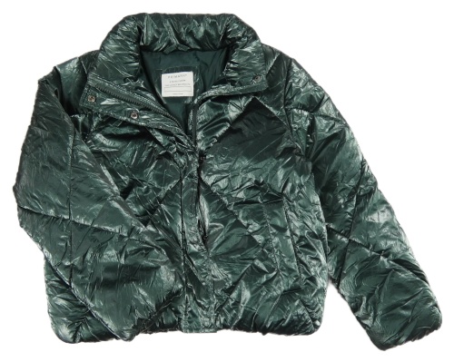 Tmavozelená lesklá šusťáková prošívaná zateplená crop bunda Primark