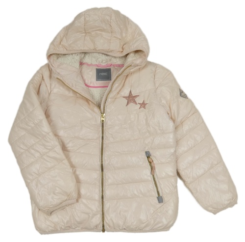 Světlerůžová šusťáková nepromokavá zimní bunda s hvězdičkami a kapucí Next