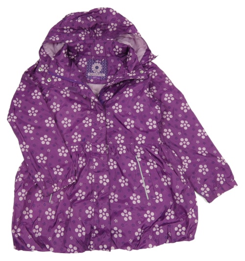 Fialová šusťáková podzimní parka s kytičkami a kapucí Tchibo