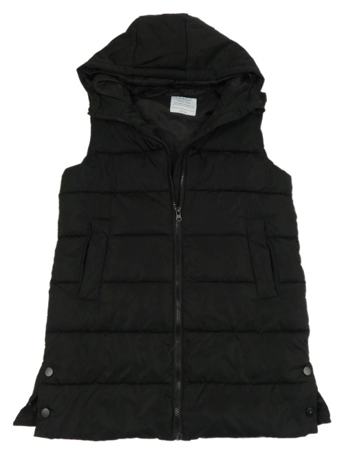Černá šusťáková prošívaná zateplená dlouhá vesta s kapucí Primark