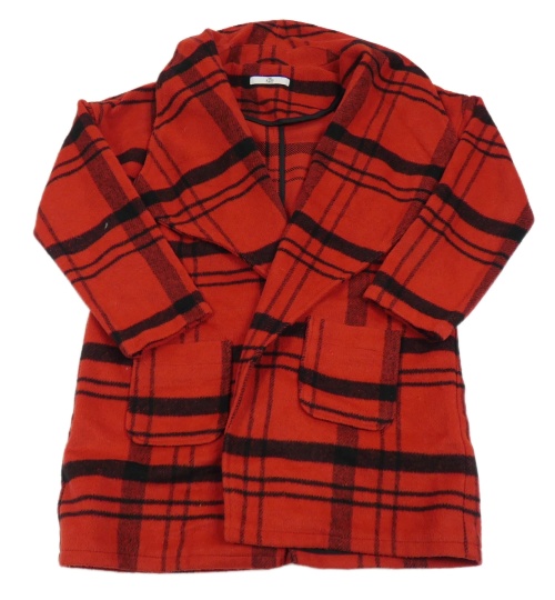 Červeno-černý kostkovaný vlněný cardigan M&S