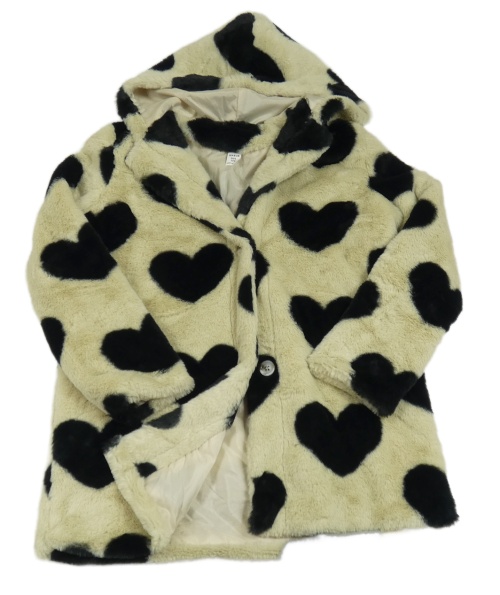 Béžová kožešinová podšitá bunda se srdíčky a kapucí Shein