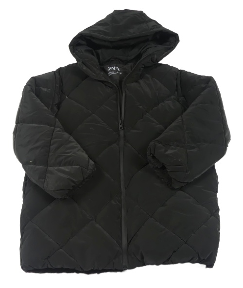Černá prošívaná šusťáková dlouhá zimní bunda s kapucí ZARA