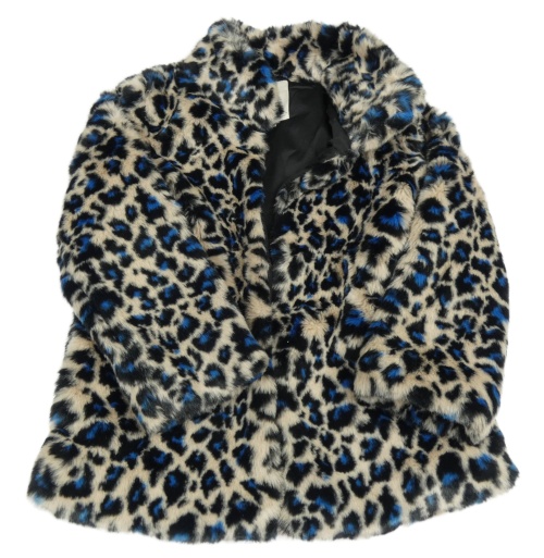 Béžovo-černo-modrá kožešinová podšitá bunda s leopardím vzorem
