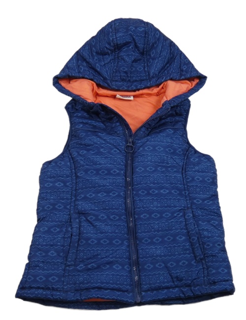 Tmavomodrá vzorovaná šusťáková zateplená vesta s kapucí YIGGA