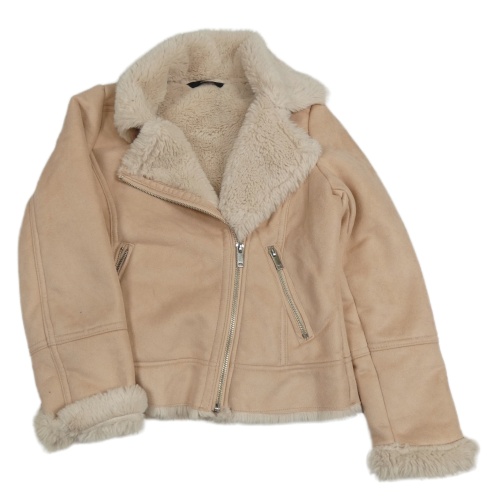 Světlerůžový semišový zateplený křivák s kožešinovým límečkem George