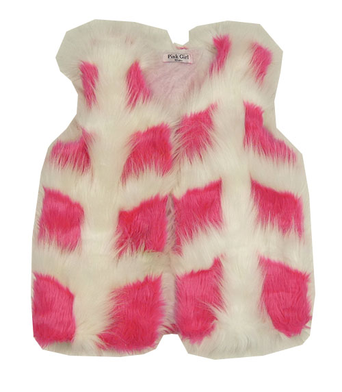 Bílo-tmavorůžová kostkovaná kožešinová podšitá vesta