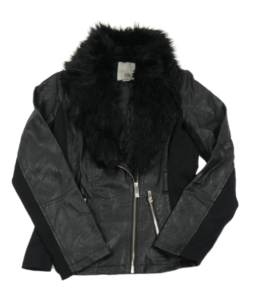 Černá koženková podšitá bunda s kožešinou - křivák River Island