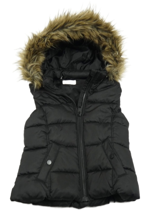 Černá šusťáková prošívaná zateplená vesta s odepínací kapucí H&M