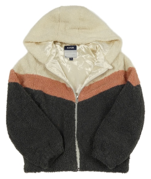 Antracitovo-smetanovo-růžová huňatá podšitá bunda s kapucí Kiabi