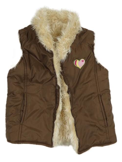 Tmavohnědá šusťáková zateplená oboustranná vesta se srdíčkem TU