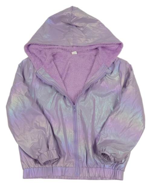 Lila šusťáková zateplená lesklá bunda s kapucí Shein