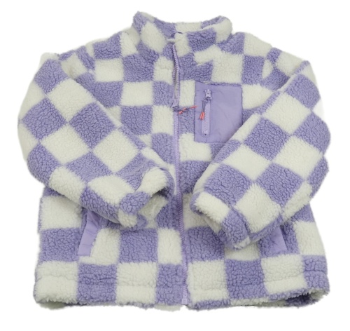Levandulovo-bílá kostkovaná huňatá zateplená bunda Tu