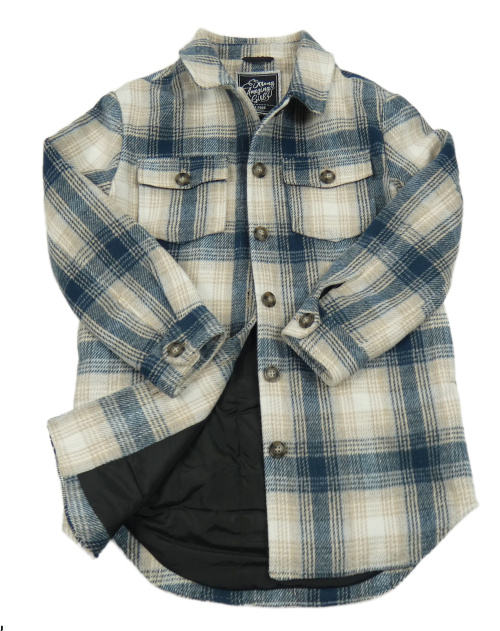 Béžovo-tmavomodro-bílá kostkovaná flanelová košilová zateplená bunda C&A