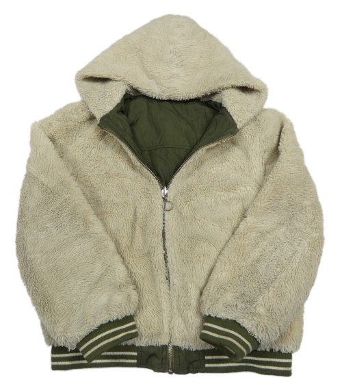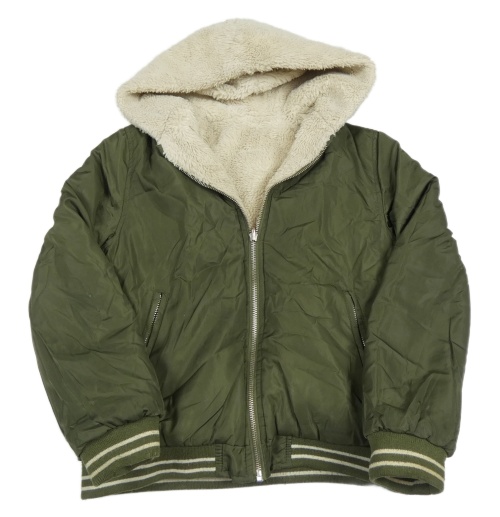 Khaki šusťákový zateplený oboustranný bomber s pruhy a kapucí PRIMARK