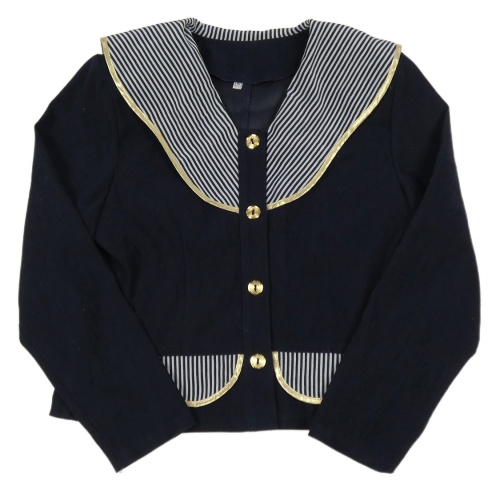 Tmavomodro-pruhoaný crop kabátek se zlatým lemem