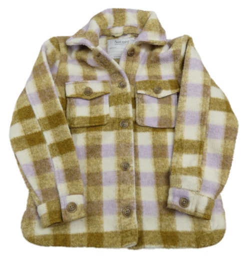 Olivovo-lila-bílá kostkovaná huňatá košilová bunda Nutmeg