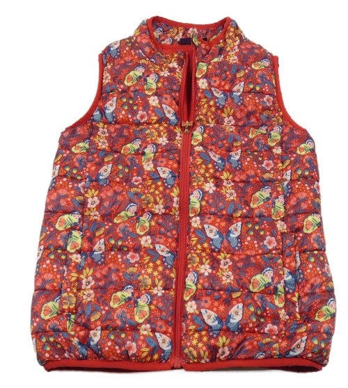 Červená prošívaná šusťáková zateplená vesta s motýlky a kytičkami SeRGeNT MaJoR