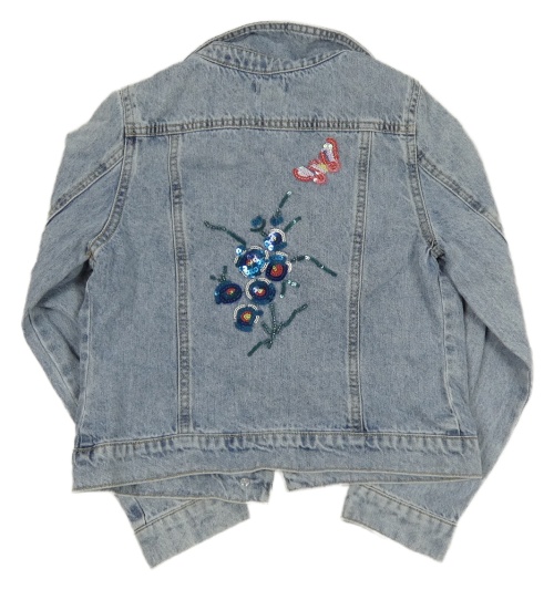 Světlemodrá riflová crop bunda s flitry Monsoon