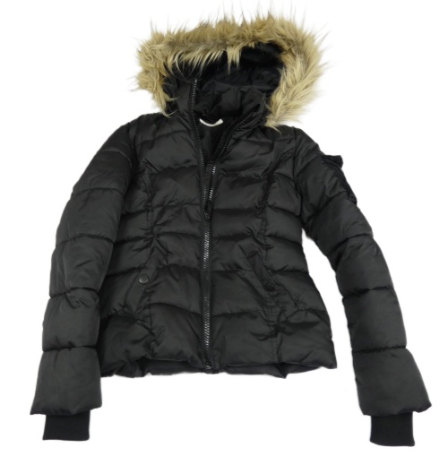Černá prošívaná šusťáková zimní bunda s odepínací kapucí s kožešinou H&M