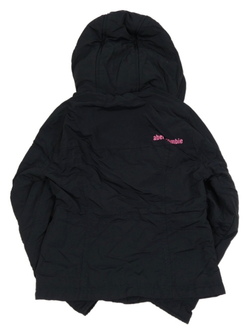 Tmavomodrá šusťáková zateplená crop bunda s kapucí Abercrombie&Fitch