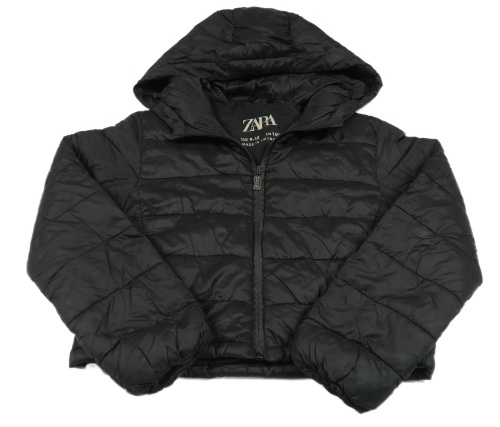 Černá šusťáková prošívaná zateplená crop bunda s kapucí Zara