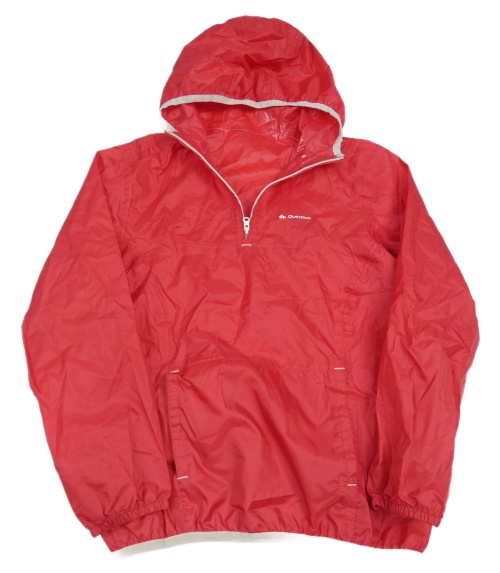 Jahodová šusťáková nepromokavá funkční větrovka s logem a kapucí Quechua