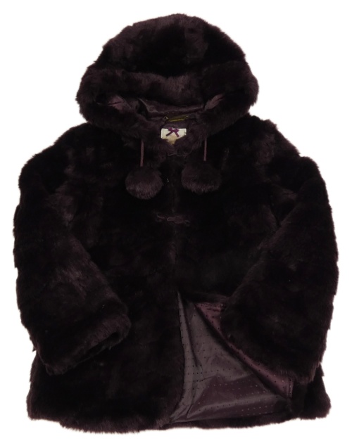 Mahagonový kožešinový podšitý kabát s bambulemi a kapucí M&S
