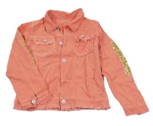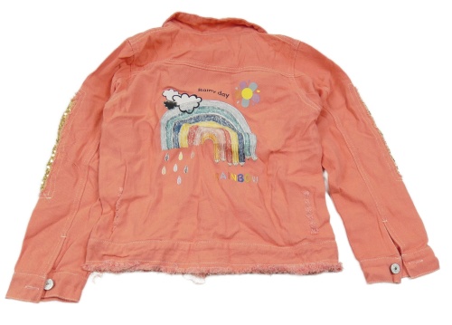 Růžová riflová bunda s flitry a duhou