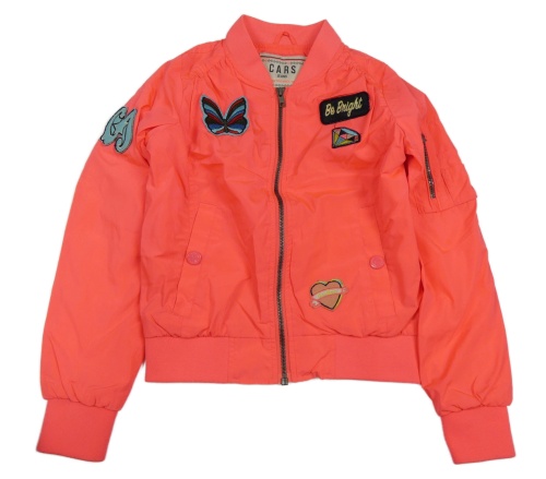 Neonově růžová šusťáková jarní bunda s nášivkami Cars