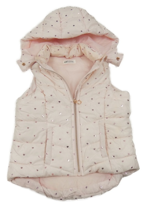 Světlerůžová šusťáková zateplená vesta se srdíčky a kapucí H&M