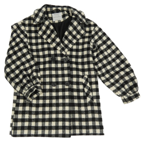 Černo-bílý kostkovaný vzorovaný vlněný podšitý kabát PRIMARK