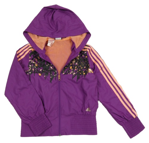 Fialovo-vzorovaná šusťáková sportovní crop bunda s kapucí Adidas
