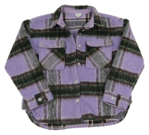 Lila-zeleno-hnědá kostkovaná chlupatá košilová bunda s kamínky River Island