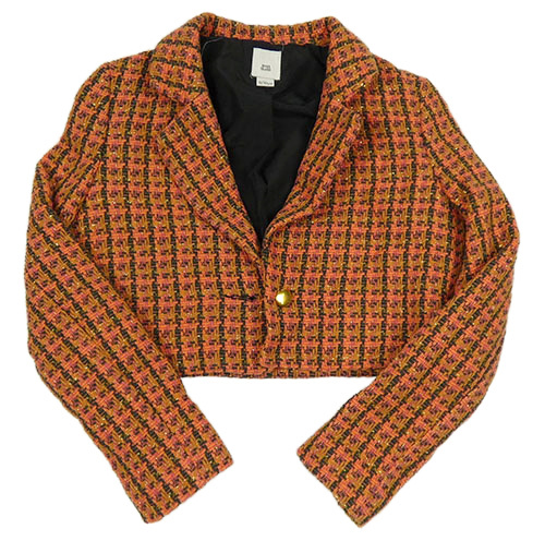 Růžovo-tmavozeleno-korálový vzorovaný pletený crop kabátek River Island
