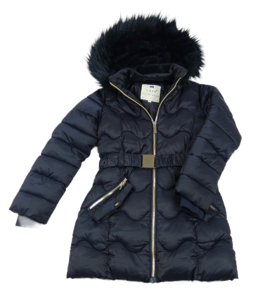 Tmavomodrý šusťákový zimní kabát s páskem a kapucí F&F