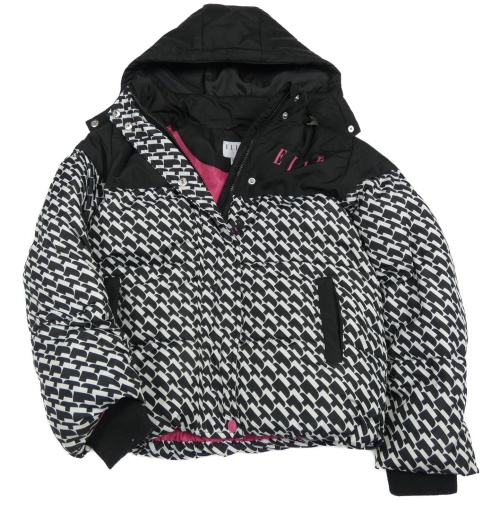 Černo-bílá vzorovaná šusťáková zimní bunda s odepínací kapucí Elle