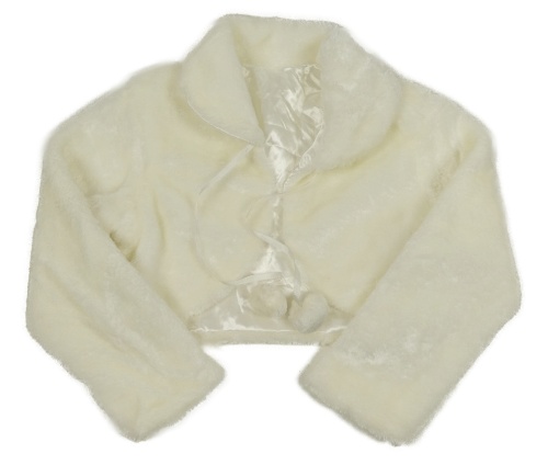 Smetanové kožešinové podšité bolerko s límečkem a bambulkami