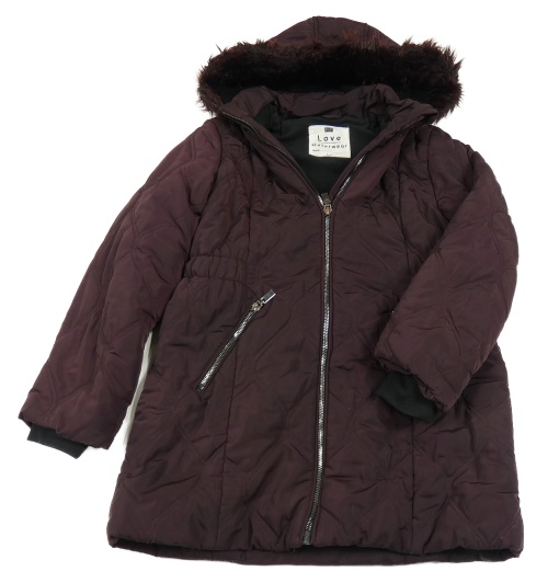 Mahagonová šusťáková prošívaná zateplená bunda s kapucí s kožešinou F&F