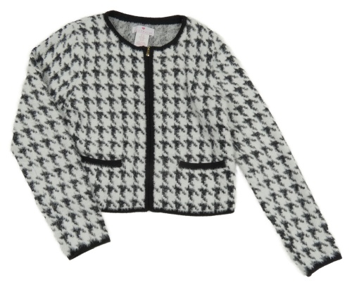 Bílo-černý vzorovaný pleteno/chlupatý crop kabátek Lulurain