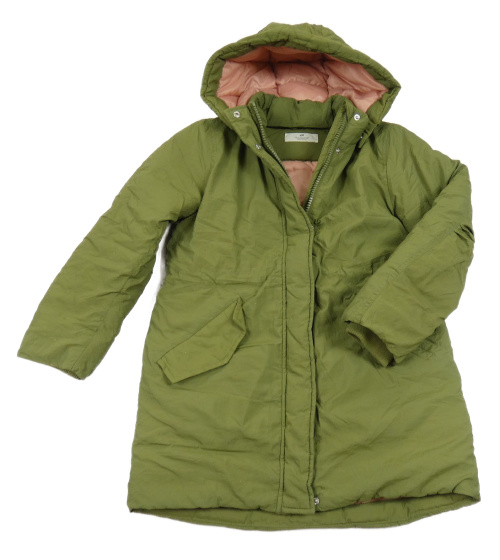 Khaki šusťákový zimní kabát s kapucí H&M