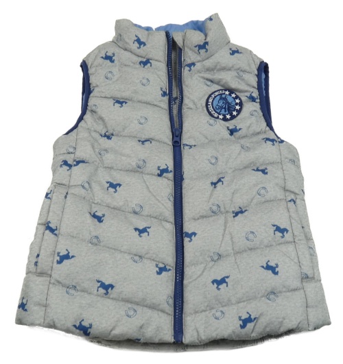 Šedo-tmavomodrá melírovaná prošívaná šusťáková zateplená jezdecká vesta s koníky a kotvami RIDING CAMP