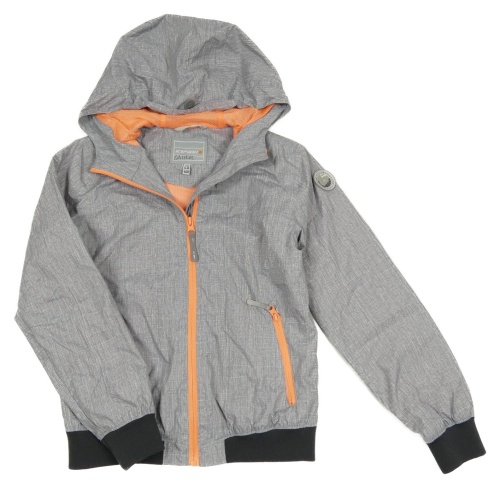 Šedá melírovaná šusťáková jarní funkční bunda s korálovými zipy a kapucí Icepeak