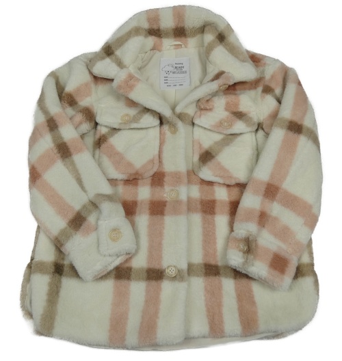 Bílo-růžová kostkovaná chlupatá podšitá košilová bunda Nutmeg