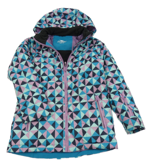 Tyrkysovo-růžová vzorovaná zimní funkční bunda s kapucí Crane