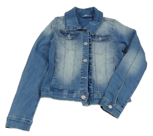 Modrá tepláková riflová crop bunda s volánkem name it.