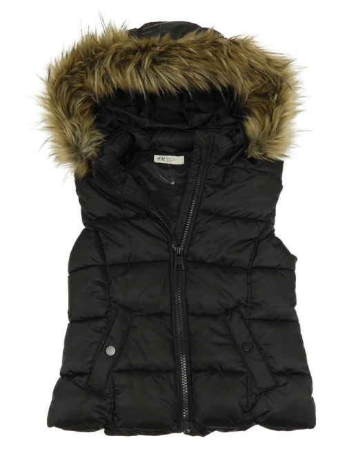 Černá šusťáková zateplená vesta s kapucí s kožešinou H&M