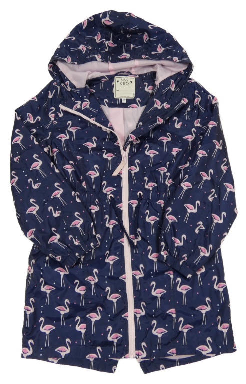 Tmavomodrá šusťáková jarní parka s plameňáky a kapucí M&S