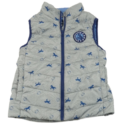 Šedo-tmavomodrá melírovaná prošívaná šusťáková zateplená jezdecká vesta s koníky a kotvami ACTIVE TO'UCH
