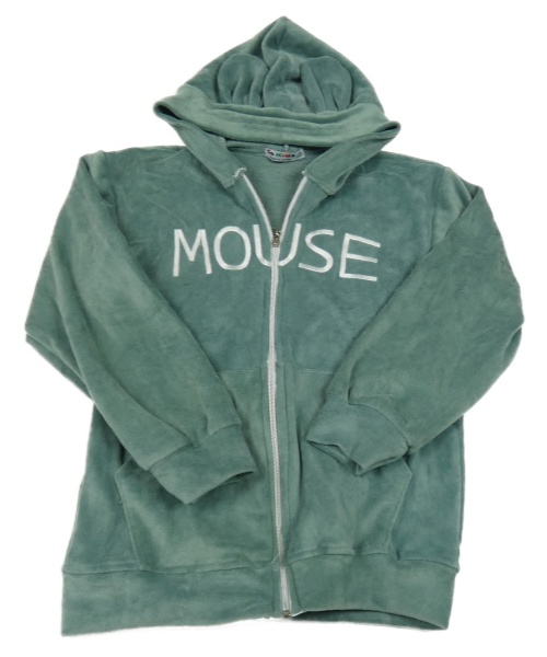 Olivovošedá plyšová bunda s nápisem a kapucí s oušky